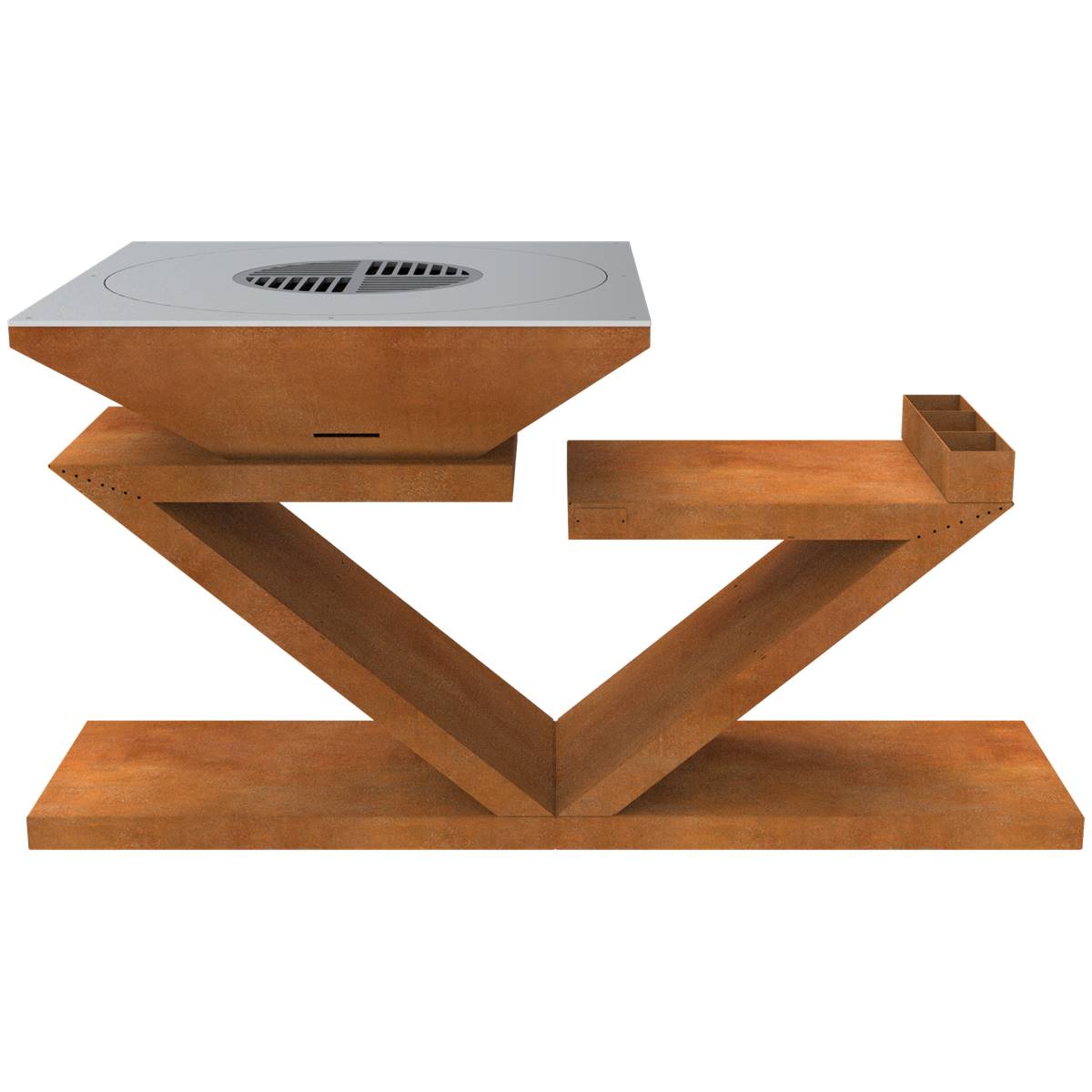 Brasero Double Z en acier corten avec plancha carrée 90x90cm